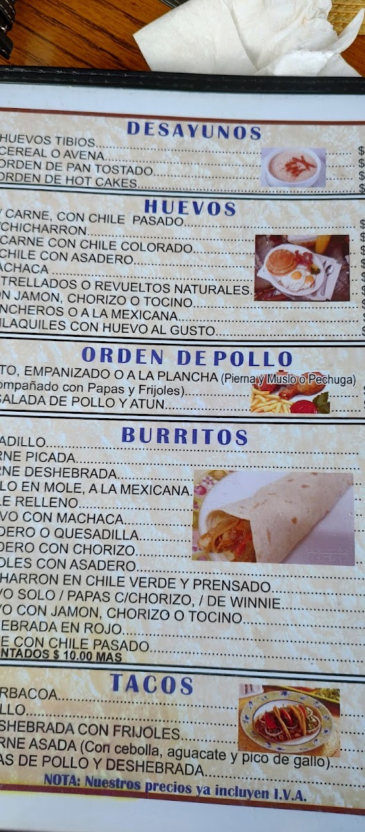 Restaurante El Paisano Menu